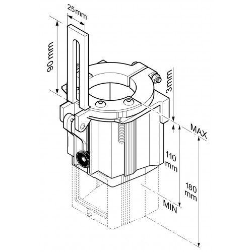 - Method of attachment - Secures around depth stop collar using fixing top to suit configuration